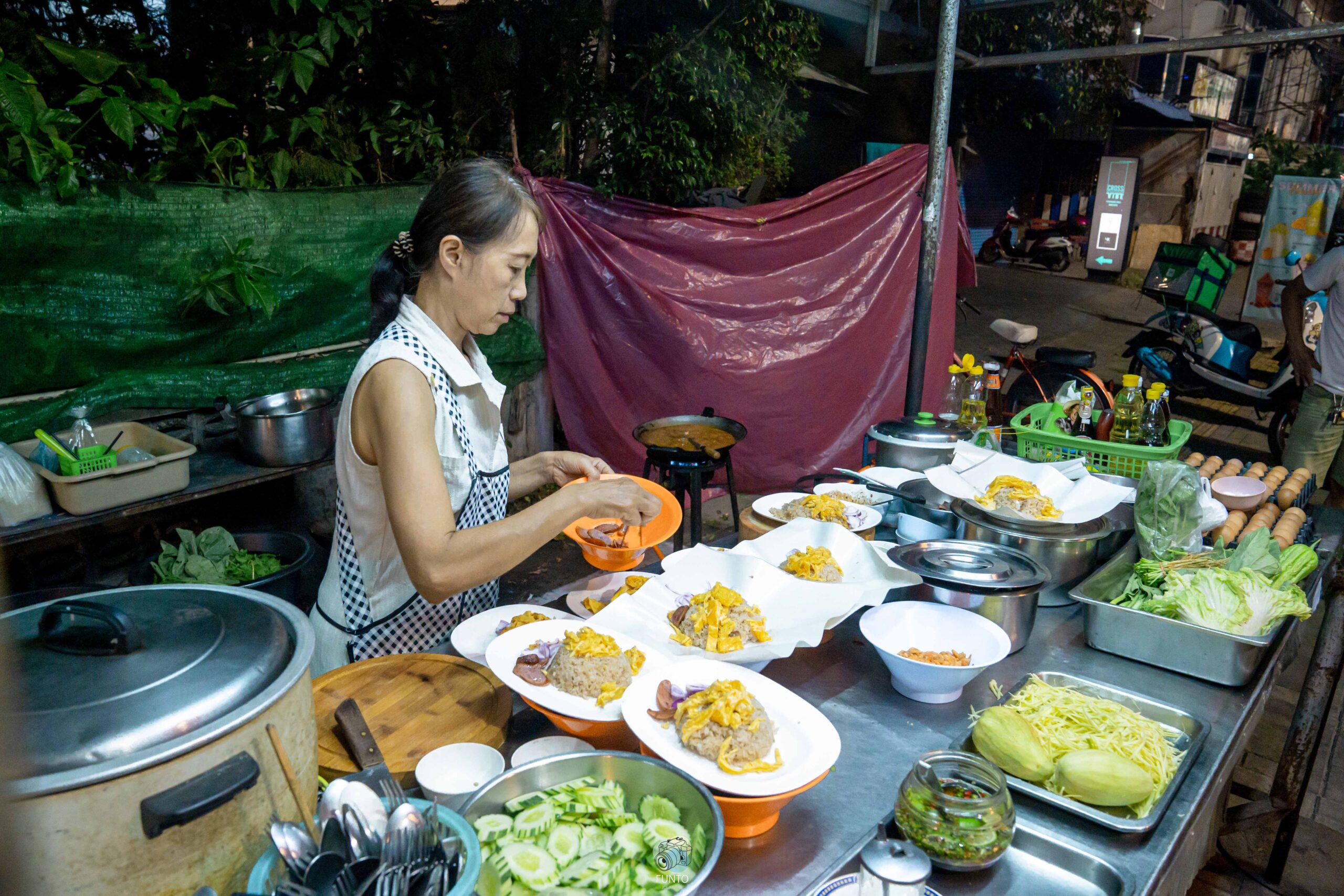 หรืออีกชื่อ “ร้านข้าวผัดร่มโพธิ์อาหารตามสั่ง” สตรีทฟู้ดเจ้าอร่อย ที่เปิดมาแล้วกว่า 20 ปี ราคาสบายกระเป๋า ที่สำคัญปริมาณเยอะแบบจุกๆ กับเมนูเด็ดของร้าน นั้นก็คือ ข้าวคลุกกะปิ ที่บอกเลยว่าอร่อยมากกก ข้าวหอมกลิ่นกะปิสุดๆ เครื่องเคียงคือจัดเต็ม ราคาเพียง 40.- เองเน้อ นอกจากนี้เค้าก็มีเมนูอาหารตามสั่งอื่นๆ อีกด้วยนะ อย่างข้าวผัด ผัดกะเพรา ผัดคะน้า