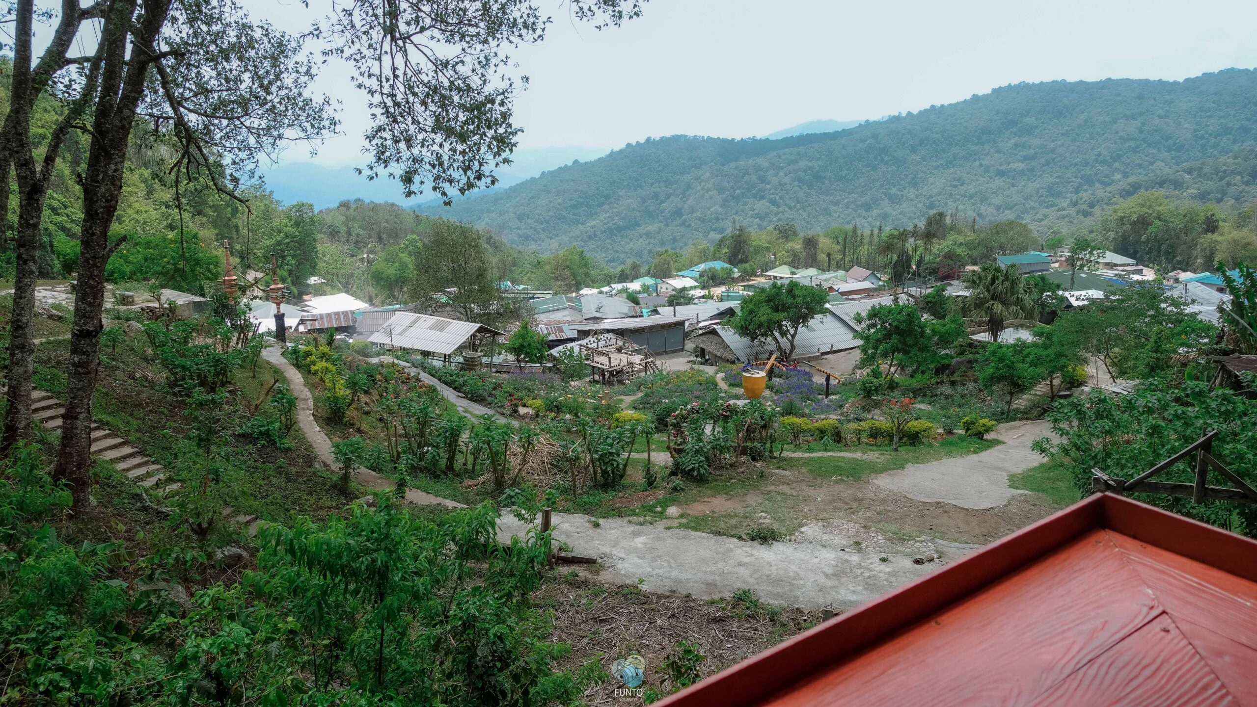 สามารถมองเห็นทั้งหมู่บ้าน ภูเขา สวนดอกไม้ เรียกได้ว่าเป็นจุดชมวิวที่สวยที่สุดของหมู่บ้านเลยก็ว่าได้นะ