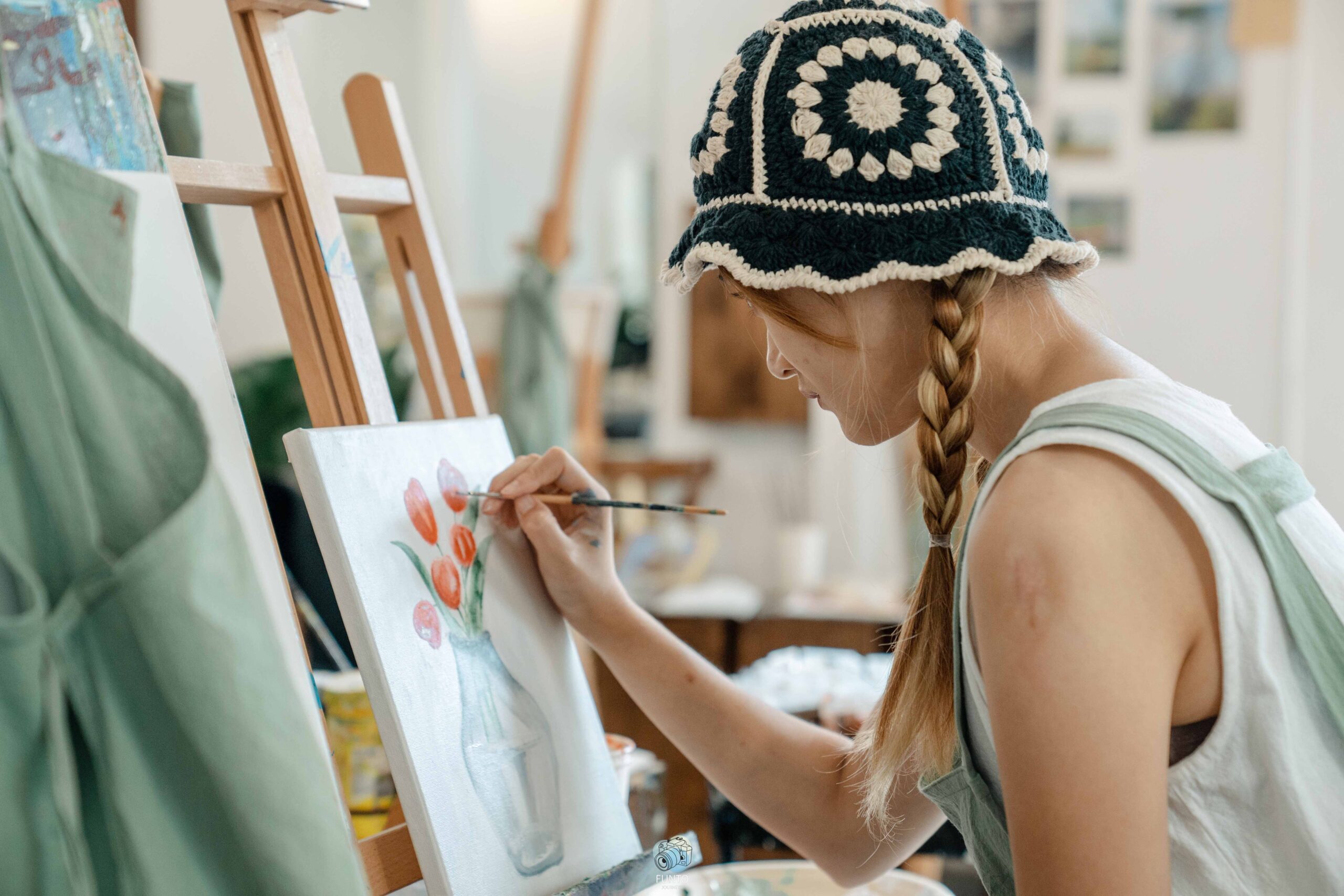 ซึ่งถ้าใครไม่มีประสบการณ์ในการวาดระบายสี หรือวาดภาพไม่เป็นเลย ก็ไม่ต้องห่วงนะ เพราะเค้ามีผู้ช่วยที่คอยสอนจนเราทำเสร็จเลยน้า รับรองว่าได้รูปสวยๆ กลับไปแน่นอน