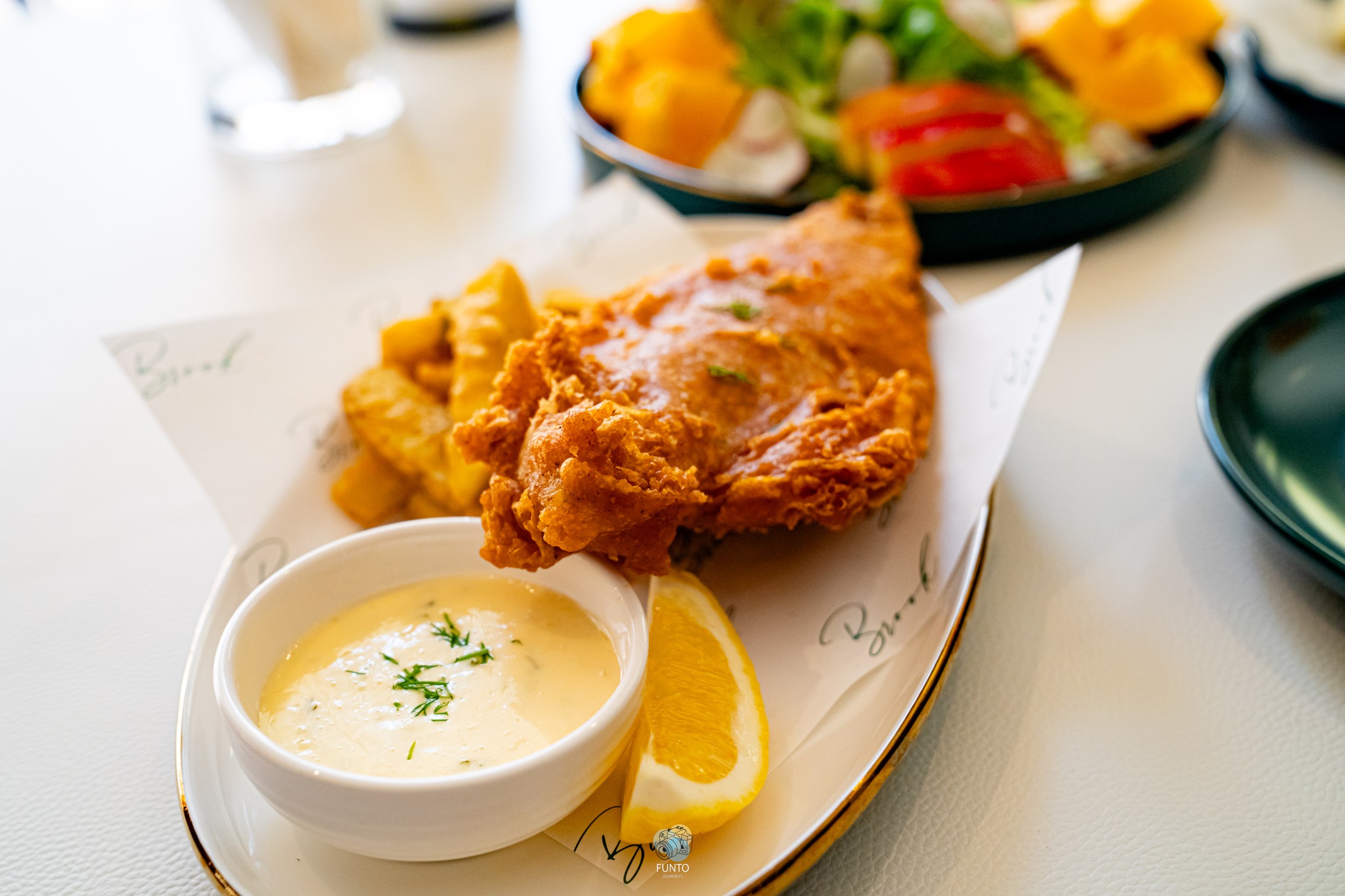 ร้านอร่อยบอกต่อที่อยากแนะนำให้ทุกคนไปลอง กับเมนูเด็ดที่อยากนำเสนอ ‘Fish & Chips’ บอกเลยว่าอร่อยสุดๆ เนื้อปลาแน่น ชิ้นหนาไม่จกตา ตัวแป้งคือกรอบรสชาติดีงามและไม่อมน้ำมัน ยิ่งตอนที่จิ้มกินกับตัวทาร์ทาร์ซอส คือมันลงตัวสุดๆไปเลยค่ะ แถมสามารถเลือกประเภทของปลาได้ด้วย