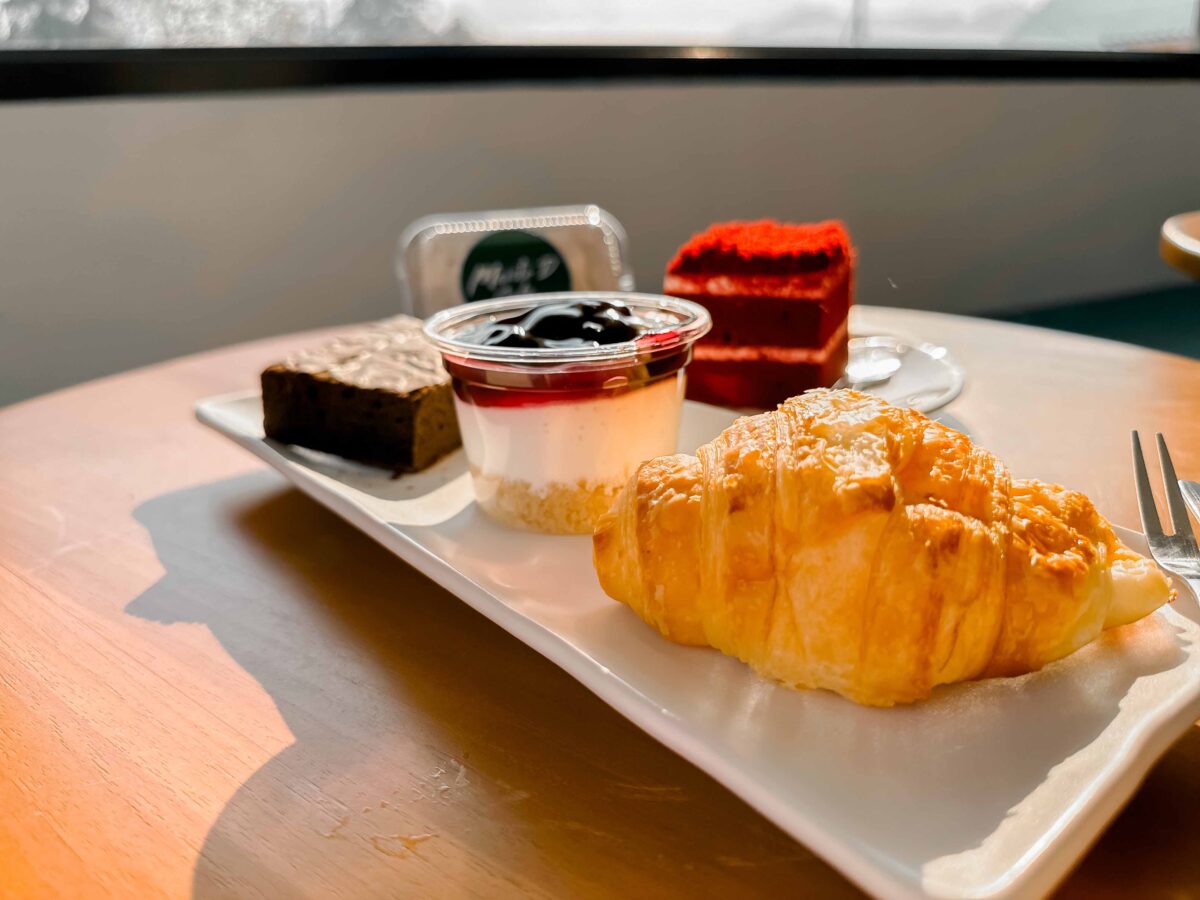ไม่ว่าจะเป็นเค้ก ครัวซองต์ บราวนี่ ที่มีให้เลือกหลากหลายเมนู แถมราคาก็น่ารักอีกด้วยน้า ❤️