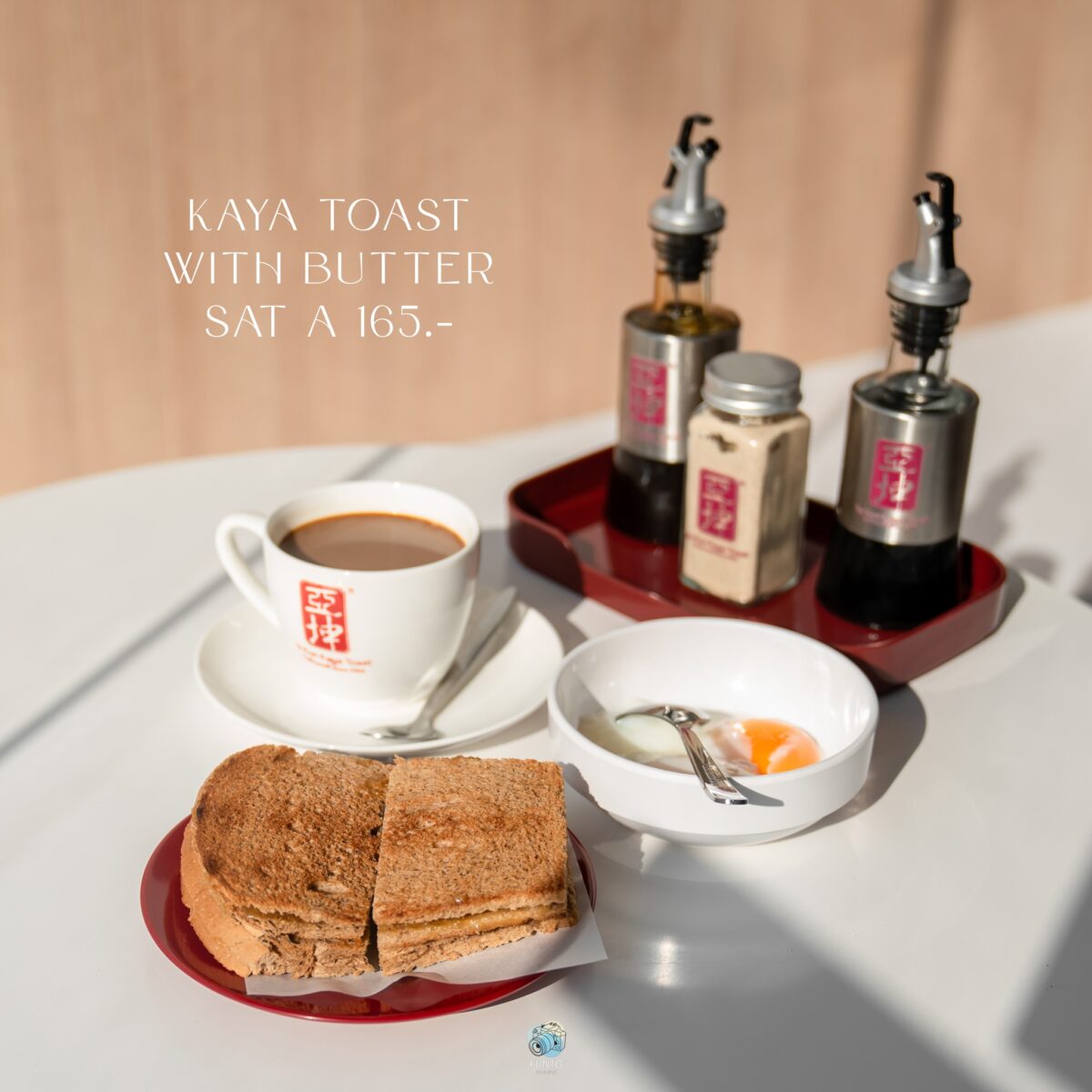 เมนูที่สั่งวันนี้ คือ Kaya Toast with butter sat A (165.-) ในเซ็ทเราจะได้โทสต์ ไข่ลวก และโกปี๊ ตัวโทสต์จะทาด้วยคาย่าและมีตัวบัตเตอร์อยู่ข้างใน รสชาติหอมอร่อยสุดๆ ส่วนตัวคือชอบมากค่ะ แนะนำให้จิ้มกับไข่ลวก เข้ากันมากๆ เลยค่ะ ตบท้ายด้วยโกปี๊ อร่อยสุดๆไปเลยค่ะ !!